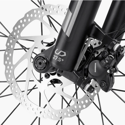 Equipped with SHIMANO 180mm hydraulic disc brakes, experience superior braking power that provides ultimate control and confidence under any riding conditions.